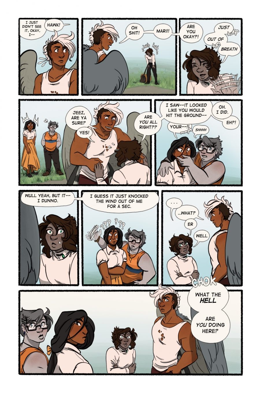 "Well yeah, but it--I dunno," Hawk was saying. "I guess it just knocked the wind out of me for a sec." He looked down at Numair, whose expression had suddenly become very uncomfortable. "...What?"