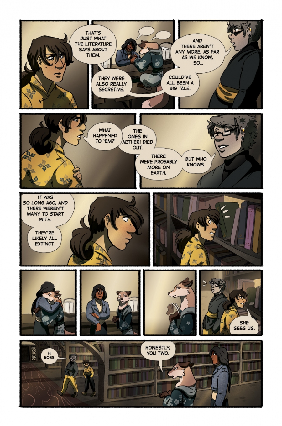 "What happened to 'em?" Liya mumbled, returning to stare through the gap in the bookshelf. Yoshi was holding one of Shinobu's paws; Shinobu's head was lowered towards her.
