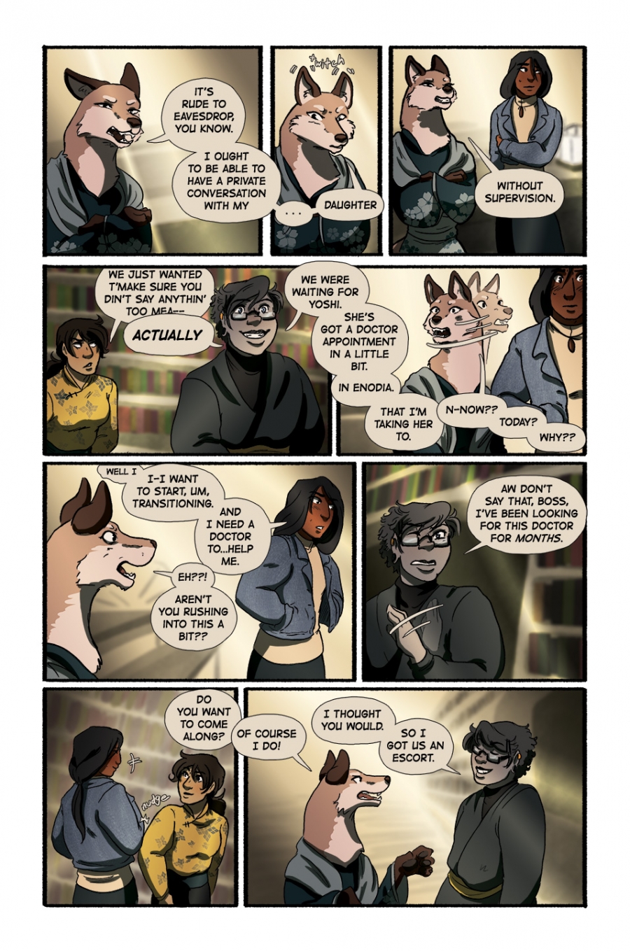"Well I--" Yoshi jammed her hands in her jacket pockets, still looking away, "I-I want to start, um, transitioning. And I need a doctor to...help me."