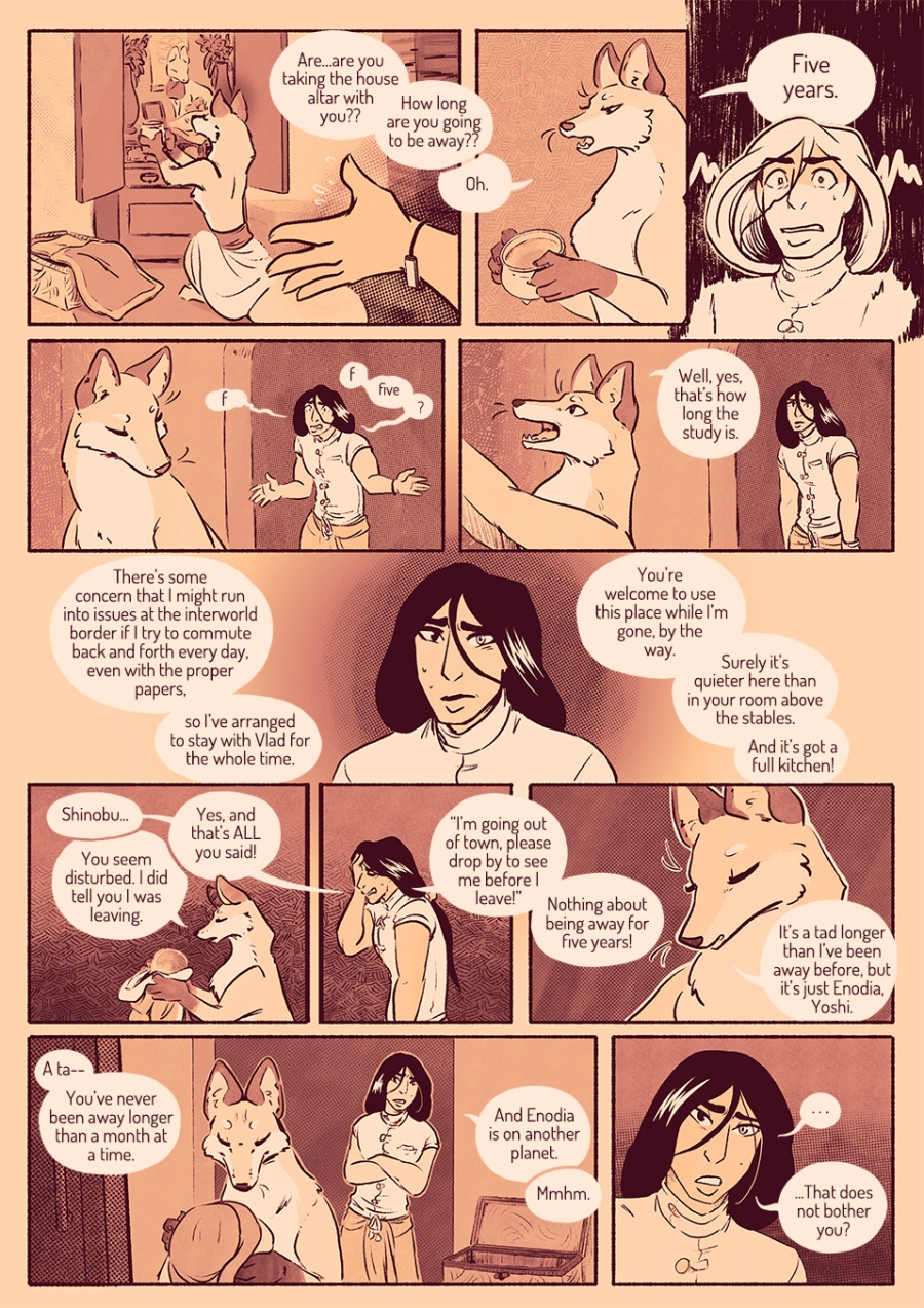 "A ta--" Yoshi folded her arms. "You've never been away longer than a month at a time. And Enodia is on another planet."