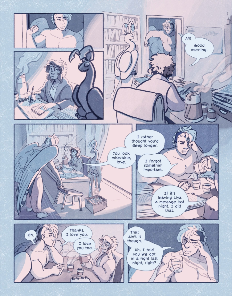 "I love you too," Numair replied with a slight smile. Hawk picked up the cup Numair had poured for him, squeezing the eye he'd massaged shut against the light.