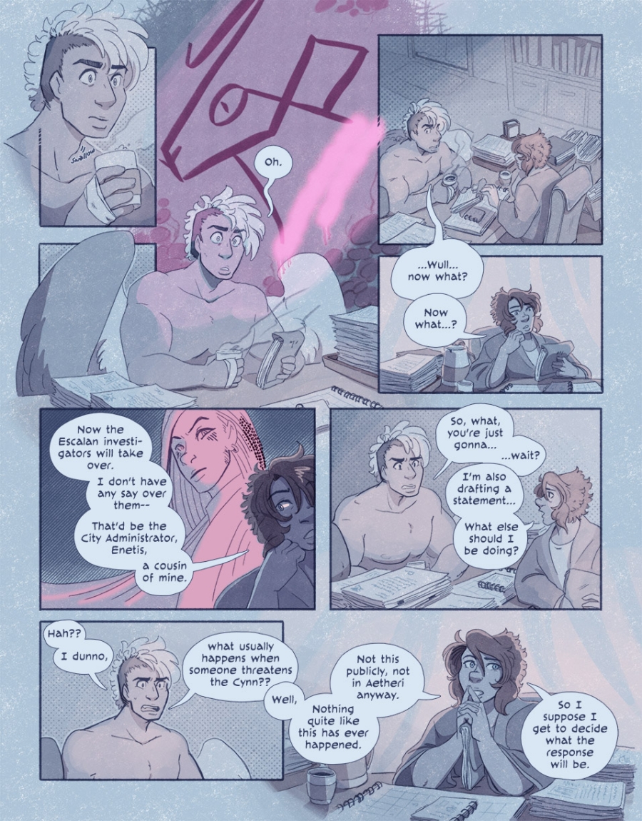Numair clasped his hands together over the top edge of the report. "Well," he said slowly, tapping his lips with his index fingers. "Nothing quite like this has ever happened. Not this publicly, not in Aetheri, anyway," he added. "So I suppose I get to decide what the response will be."